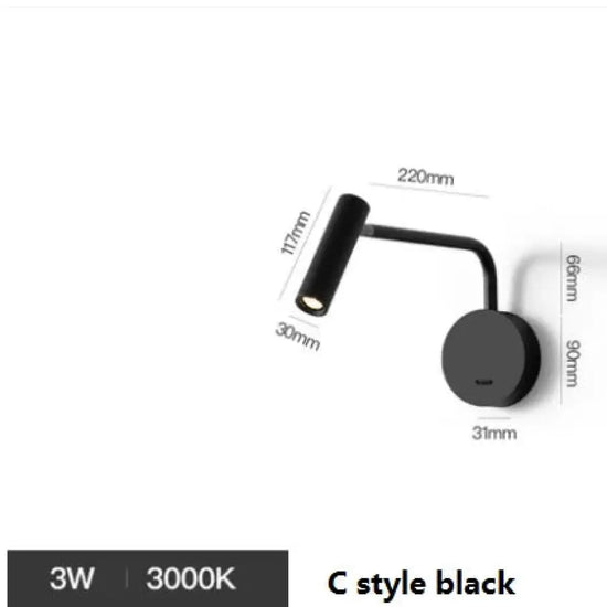Applique Murale Led Pivotante Design Moderne B Noir / Lumière Blanche Applique Chambre