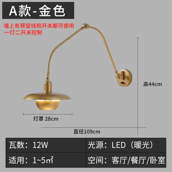 Applique Murale Industrielle Robuste Design Articulé Lumière. A Or / Sans Fil De Prise Chambre