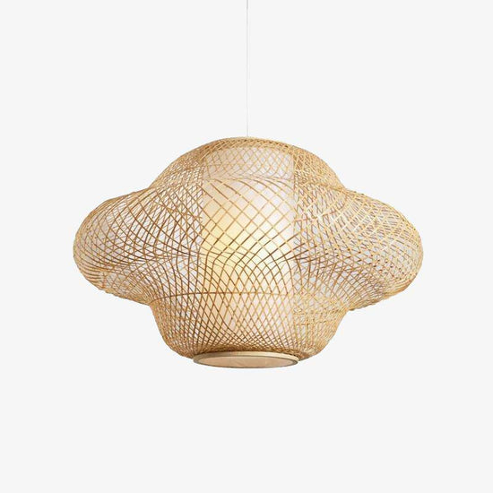 Suspension en rotin LED avec abat-jour aux formes arrondies