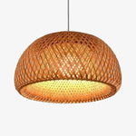 Suspension LED avec abat-jour arrondi en rotin Decor