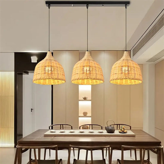 Ce lustre rotin pour salle à manger s'adapte parfaitement à votre intérieur. Superbe au-dessus d'une table de salle à manger ou dans une entrée, cette suspension en rotin est pleine de charme rustique style chinois