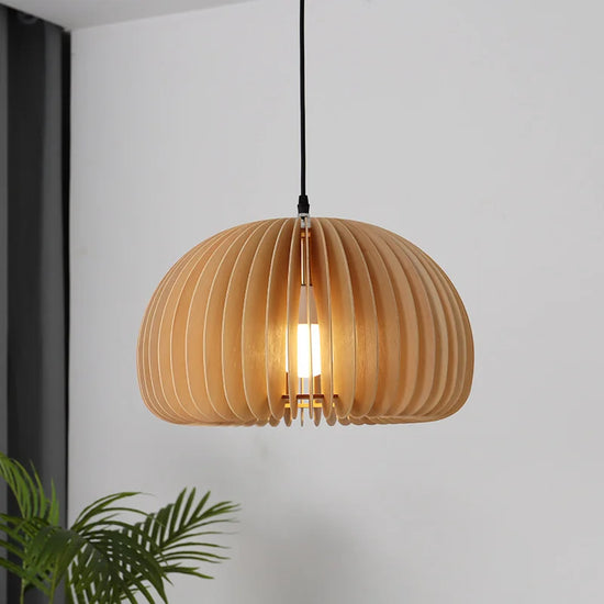 Lustre en bois japonais style nordique rétro citrouille pour intérieur