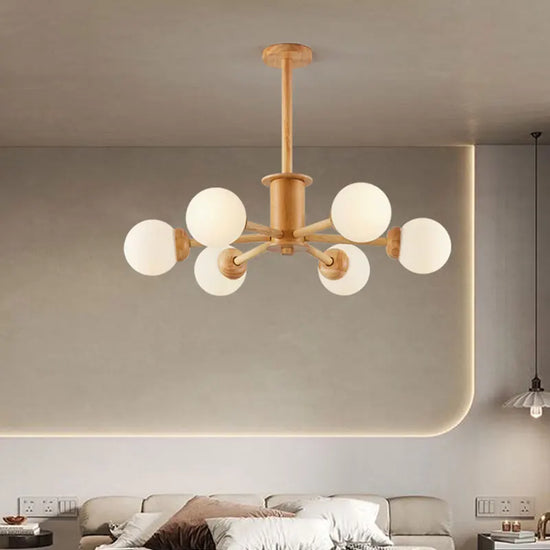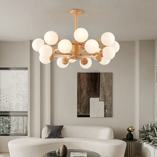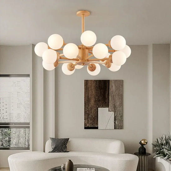 Lustre en Bois Nordique avec Boule de Verre Décorative : Élégance et Modernité
