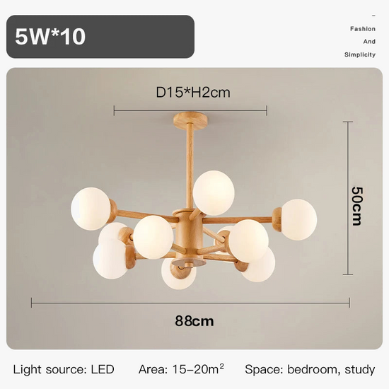 Découvrez le lustre en bois nordique avec boule de verre décorative, une pièce maîtresse qui transformera votre intérieur en un espace chaleureux et sophistiqué. Ce luminaire réunit le charme intemporel du bois naturel avec la modernité du verre dépoli. Que votre décoration soit contemporaine ou plus traditionnelle, ce lustre s'harmonise à merveille avec n'importe quel style, illuminant votre salon, votre chambre ou votre salle à manger tout en ajoutant une note de raffinement scandinave.