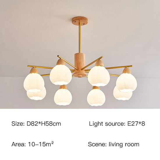 - Design contemporain : Fabriqué en bois avec une finition brossée, ce lustre présente une esthétique minimaliste qui s'harmonise avec divers styles de décoration.