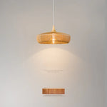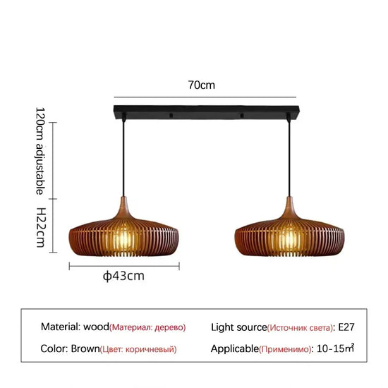 Lustre en Bois Rond Rétro pour Table de Restaurant avec LED