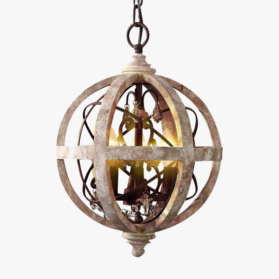 Lustre en Bois Style Campagne Américaine avec Détails en Cristal