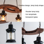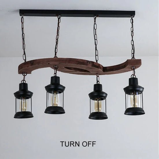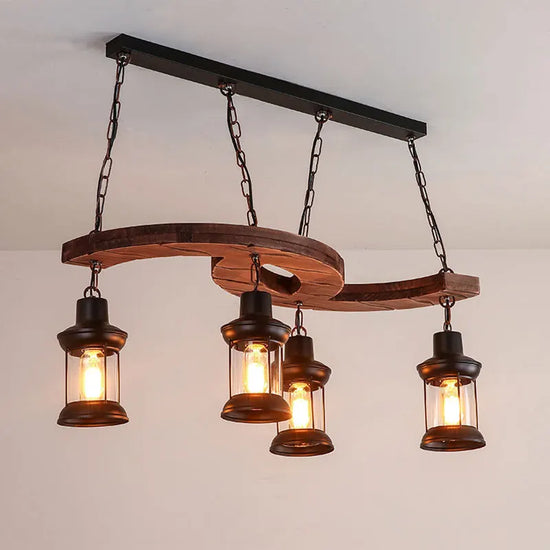Lustre industriel rétro 4 têtes en bois et fer pour café bar loft