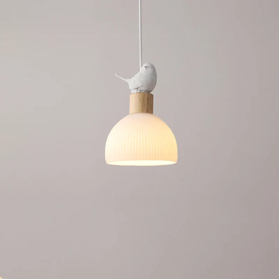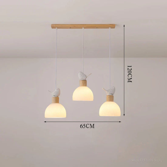 lustre led suspendu en bois avec abat-jour en verre blanc