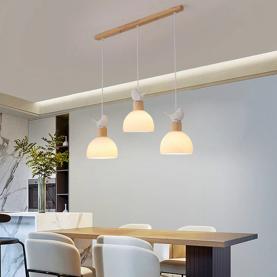 Pourquoi choisir notre lustre LED suspendu en bois avec abat-jour en verre blanc