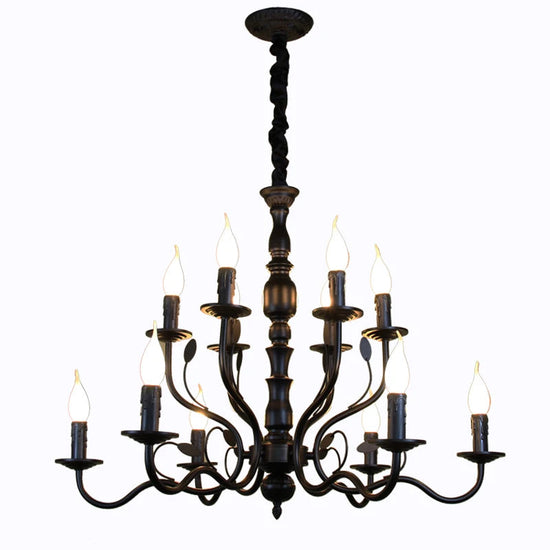 Lustre Rétro en Fer Noir Style Vintage Industriel pour Éclairage Intérieur