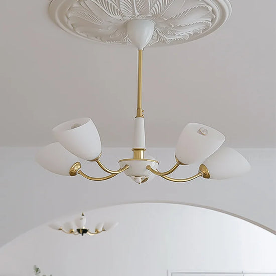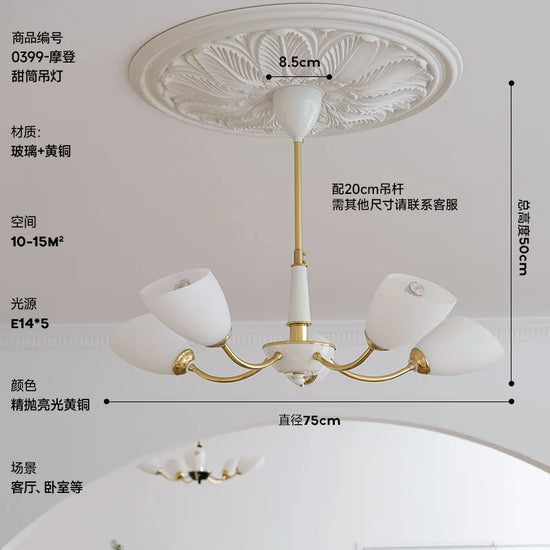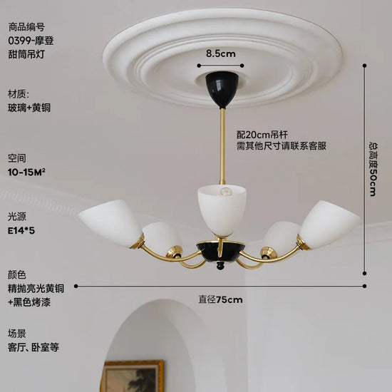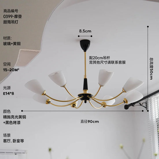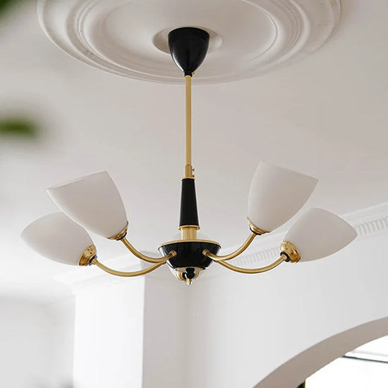 - Éclairage polyvalent : Adaptable à diverses pièces, il offre une lumière douce grâce à ses abat-jours en verre transparent qui diffusent la lumière uniformément.