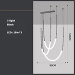 Lustre Art Déco en Métal Noir avec Éclairage LED