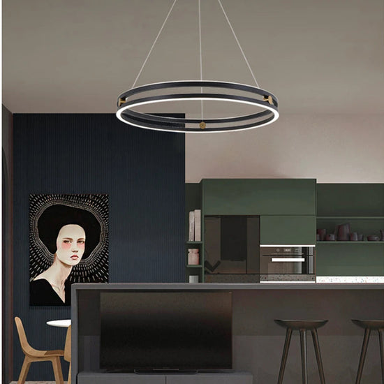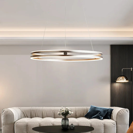 Découvrez le lustre circulaire moderne pour décoration intérieure créative et élégante, un luminaire qui sublimera vos espaces de vie avec son design épuré et contemporain. Sa silhouette minimaliste et son éclat chromé apportent une touche de sophistication à tout intérieur moderne, qu'il s'agisse du salon, de la chambre à coucher, ou d'un restaurant raffiné. Ce lustre devient rapidement le point focal de votre décoration intérieure, alliant esthétique et fonctionnalité à la perfection.