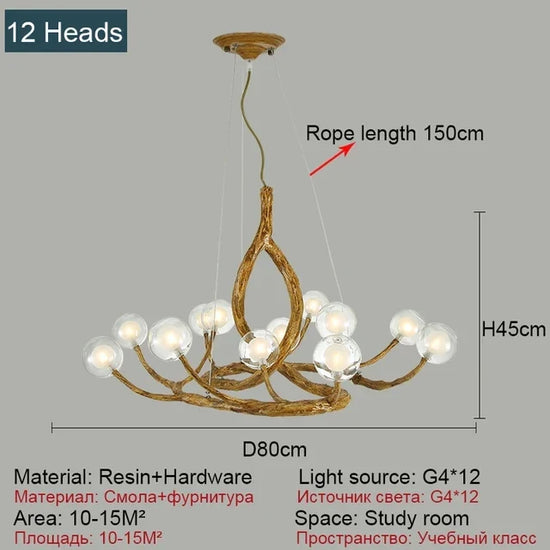 Pourquoi choisir notre lustre design imitation branche en résine avec boule de verre
