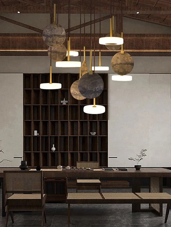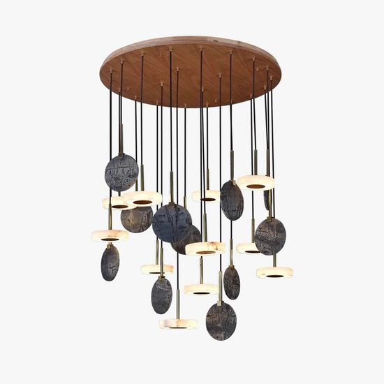 Lustre en Bois Naturel ou Marbre Doré avec Éclairage LED : Élégance et Modernité