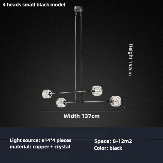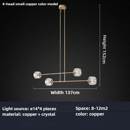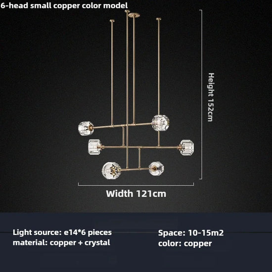 Découvrez le lustre en cristal de style américain en cuivre moderne, une pièce maîtresse qui offre un mariage parfait entre élégance intemporelle et design contemporain. Conçu pour rehausser l’atmosphère de n'importe quel intérieur, ce lustre associe la beauté du cristal au raffinement du cuivre poli. Que ce soit pour illuminer votre salle à manger, votre salon ou même votre chambre, ce luminaire crée une ambiance de luxe subtil tout en assurant un éclairage optimal sur une surface de 15 à 30 mètres carrés.