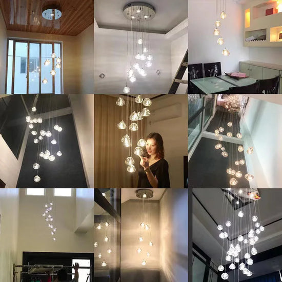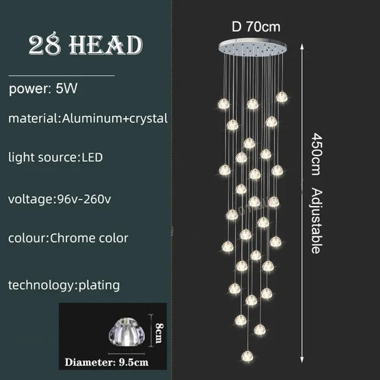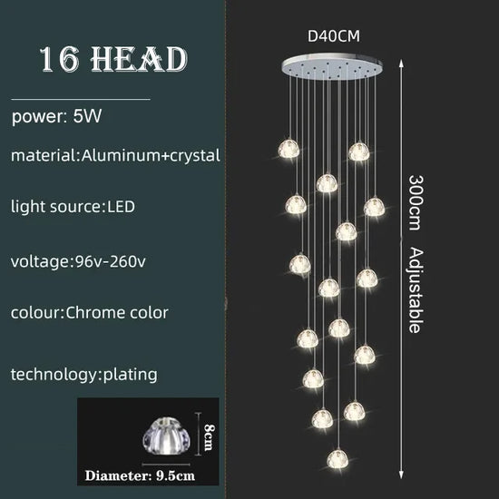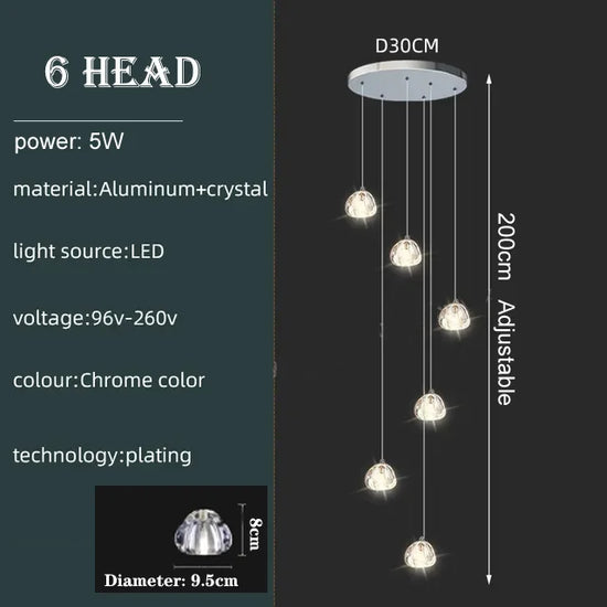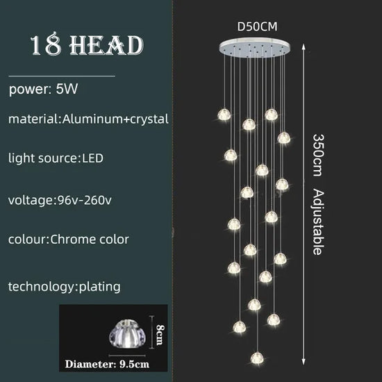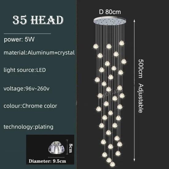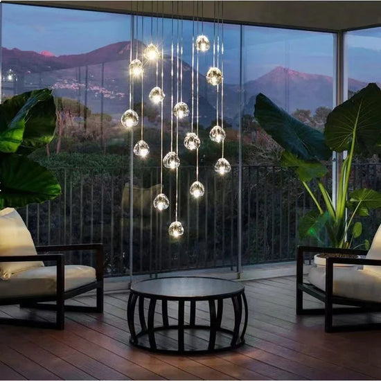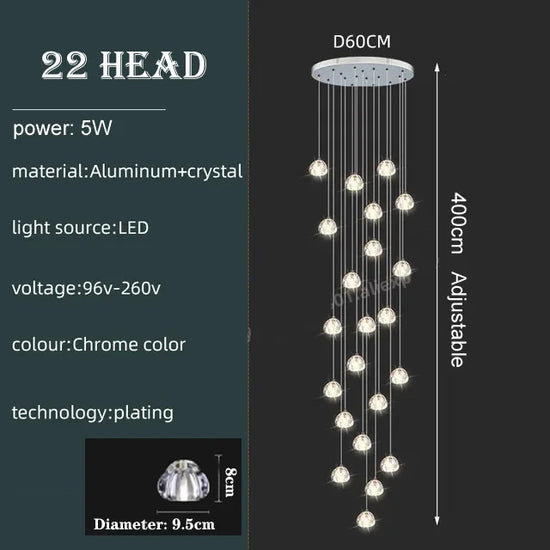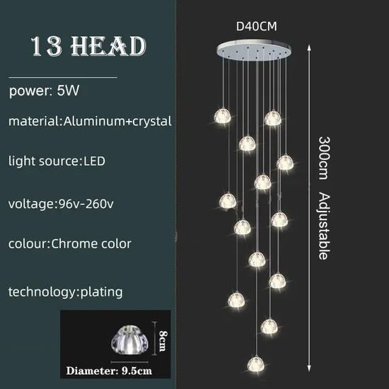 Lustre en Cristal Design Luxueux pour Escalier Colimaçon Moderne