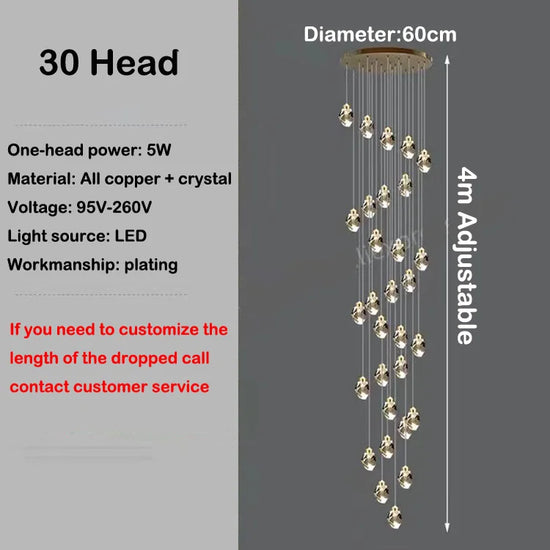 Optez pour le lustre en cristal LED design en cuivre moderne et élégant et transformez votre intérieur en un espace lumineux et sophistiqué. Que ce soit pour un usage personnel ou professionnel, ce luminaire saura répondre à toutes vos attentes tout en apportant une touche contemporaine et raffinée à votre décoration.