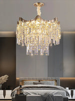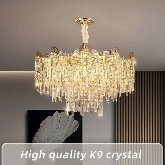 Transformez votre espace avec notre lustre en cristal moderne à 7 niveaux pour décoration intérieure. Plus qu'un simple éclairage, ce lustre est une véritable pièce maîtresse qui installe une ambiance de sophistication et d'élégance dans votre salon, salle à manger, chambre à coucher, ou hall d'hôtel. Conçue pour captiver, sa structure en métal doré et ses cristaux étincelants créent une atmosphère lumineuse unique qui améliore visuellement n'importe quel décor.