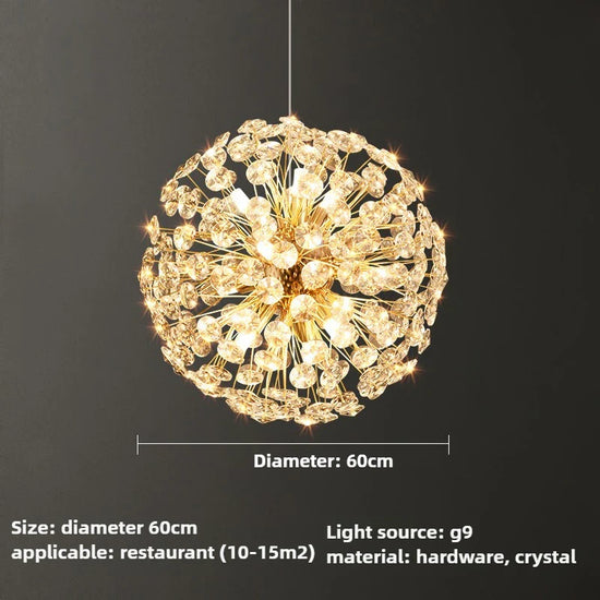 Lustre en cristal moderne en forme de pissenlit créatif et atmosphérique