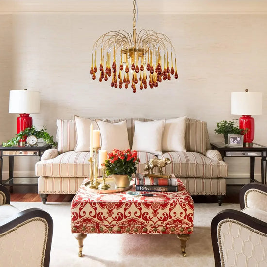 Transformez votre espace en un havre de romantisme et d'élégance avec notre lustre en cristal rétro. Ce luminaire somptueux allie parfaitement tradition et modernité grâce à son design art déco et ses cristaux colorés éblouissants. Que ce soit dans votre salon, chambre ou salle à manger, il devient l'élément central de votre décoration, apportant sophistication et lumière.