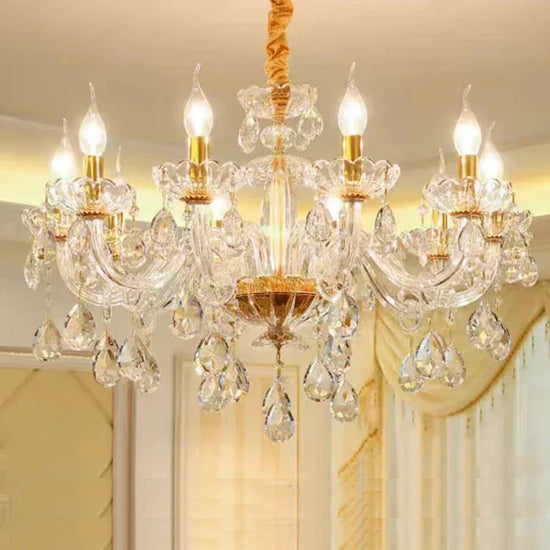 Lustre en Cristal Transparent Européen pour un Éclairage Luxueux