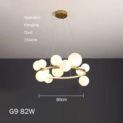 Transformez votre espace de vie avec notre lustre en verre design moderne avec bulles pour intérieur élégant. Véritable pièce maîtresse de votre décoration intérieure, ce luminaire sublime votre foyer avec une touche contemporaine et raffinée. Conçu avec des matériaux de qualité, il s'intègre harmonieusement dans différents styles de décoration, qu'il s'agisse du style scandinave, moderne ou industriel.