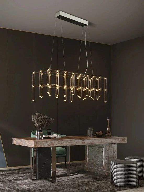 Découvrez notre lustre LED postmoderne créatif pour bar et réception, la touche d'élégance qui transformera vos espaces. Ce luminaire n'est pas qu'une simple source de lumière ; c'est un véritable bijou qui saura sublimer votre intérieur grâce à son design audacieux et moderne. Sa structure en acier inoxydable avec une finition en fer offre une robustesse alliée à une esthétique raffinée, parfaite pour illuminer une salle à manger, un salon, une chambre ou même un hall d'hôtel.