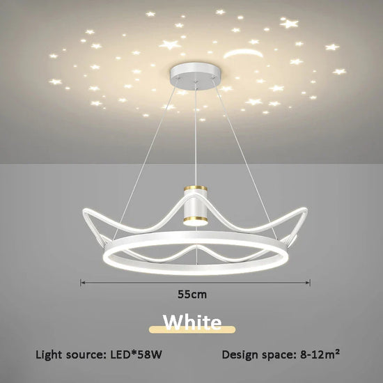 Offrez un décor enchanteur et moderne à la chambre de votre enfant avec notre lustre moderne avec projection ciel étoilé pour chambre enfant. Ce luminaire unique transforme le plafond en un ciel étoilé magique, parfait pour instaurer une ambiance sereine et propice aux rêves. Que la chambre soit destinée à une princesse, un jeune chevalier ou un passionné d'astronomie, ce lustre s'inscrit comme une pièce maîtresse alliant style contemporain et touche féerique. Son allure shadeless et épurée en fait un choix idéal pour tout intérieur moderne, tout en apportant une dimension ludique indispensable à l'éveil des enfants.