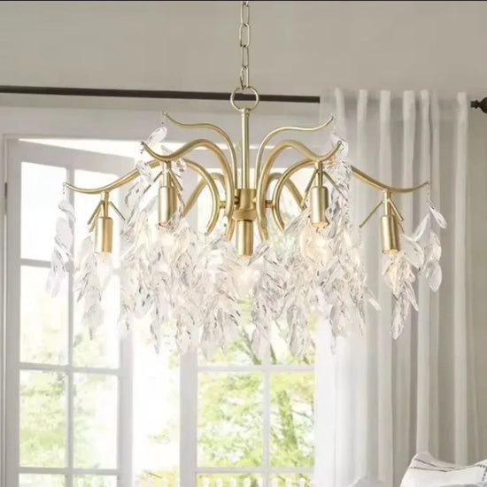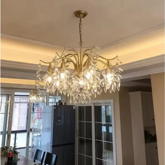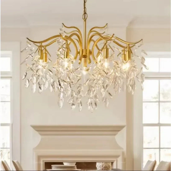 Apportez une touche d'élégance et de sophistication à votre espace intérieur avec notre lustre moderne en cristal design floral pour décoration intérieure. Ce luminaire extraordinaire, inspiré du design nordique, est le mélange parfait de luxe et de modernité, une véritable œuvre d'art pour votre maison. Avec sa forme de fleur et ses branches dorées, il évoque une esthétique raffinée qui enrichira instantanément n'importe quelle pièce, que ce soit votre salon, cuisine ou chambre principale.