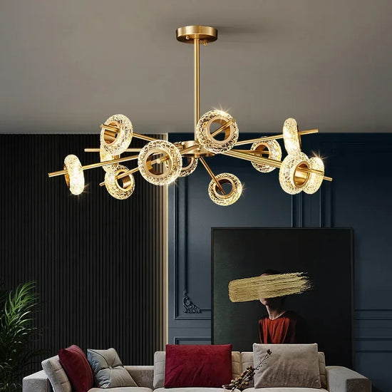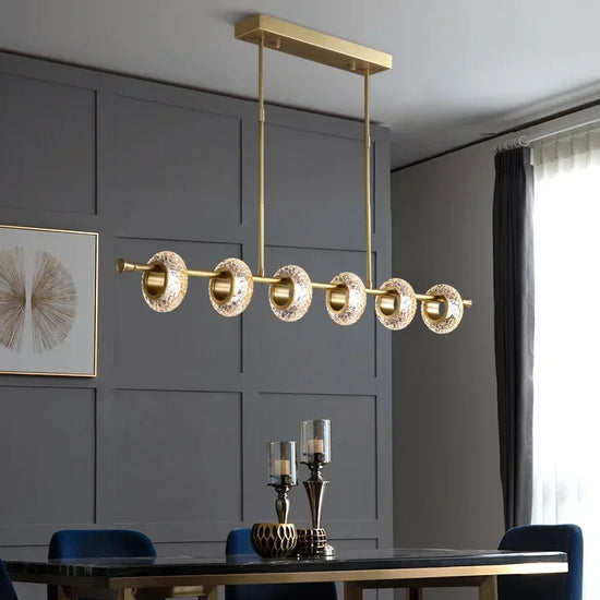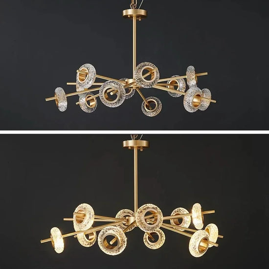 Transformez votre espace avec notre lustre moderne en cristal design pour décoration intérieure, un véritable chef-d'œuvre qui combine élégance et fonctionnalité. Ce lustre apporte une touche de luxe à votre salon, chambre ou salle à manger. Son design harmonieux, associant fer et cristal craquelé, diffuse une lumière douce et accueillante, transformant votre intérieur en un espace chaleureux et sophistiqué.