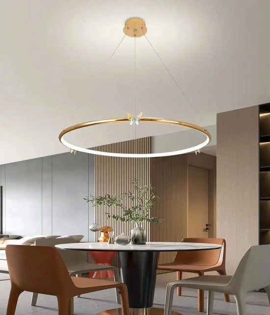 lustre moderne en forme de papillon avec anneau doré décoratif
