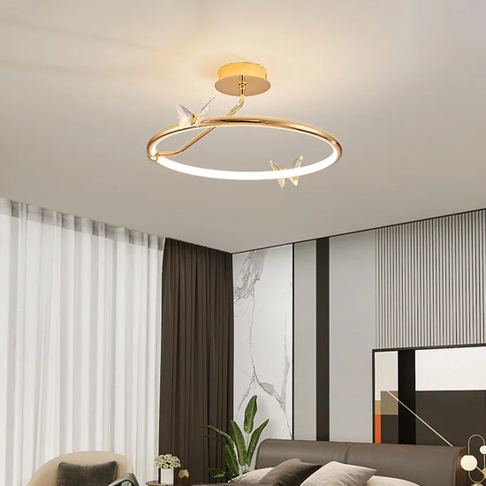 Lustre Moderne en Forme de Papillon avec Anneau Doré Décoratif