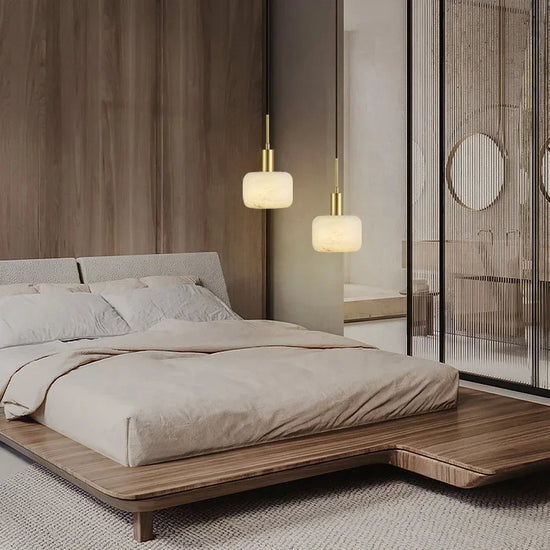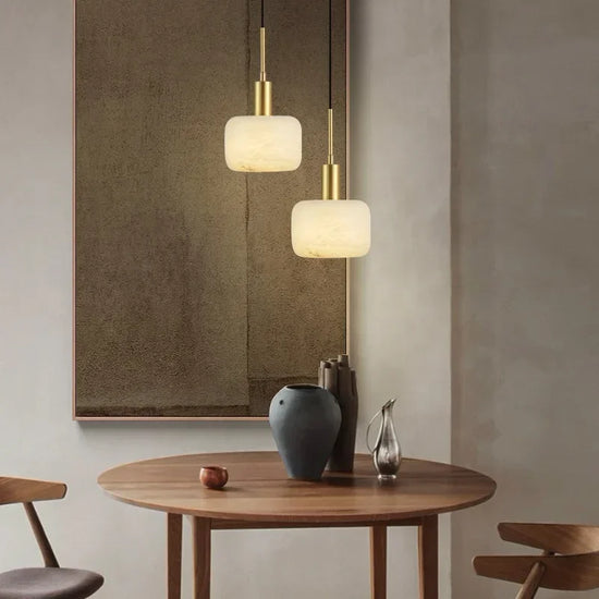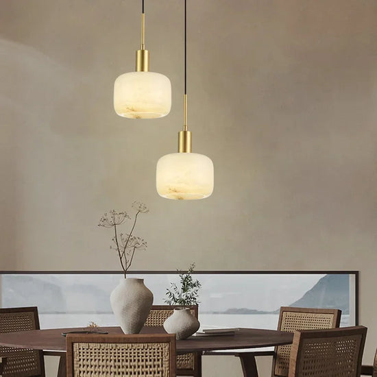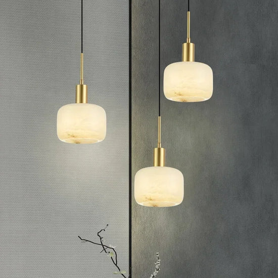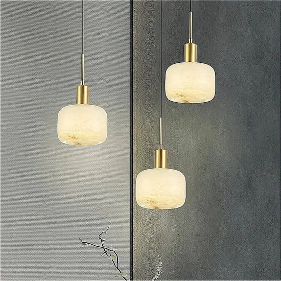 Lustre Moderne en Marbre et Cuivre Design Nordique Élégant