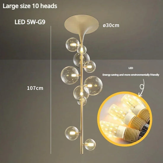 Ce lustre n'est pas seulement un objet décoratif mais une véritable œuvre d'art qui apporte une touche luxueuse à chaque pièce. Sa lumière LED, incluse, offre une économie d'énergie remarquable tout en garantissant une intensité lumineuse idéale pour des surfaces allant de 5 à 10 mètres carrés.