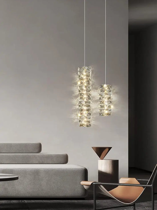 lustre moderne léger en cristal pour intérieurs élégants et contemporains