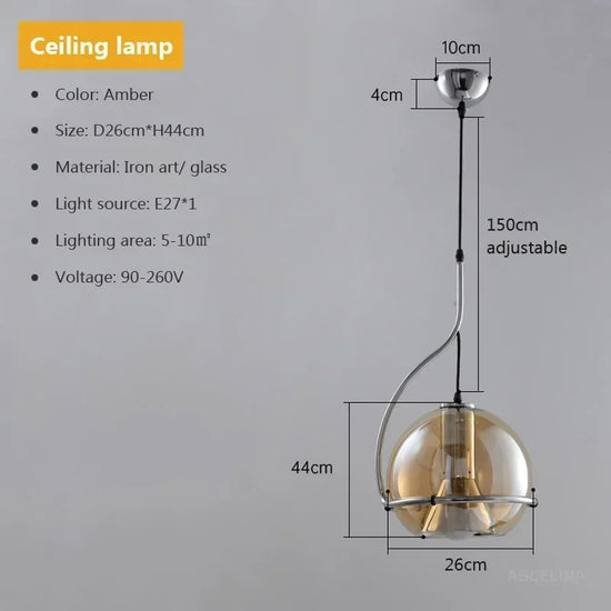 Lustre Rétro Américain en Verre Ambré pour Ambiance Créative