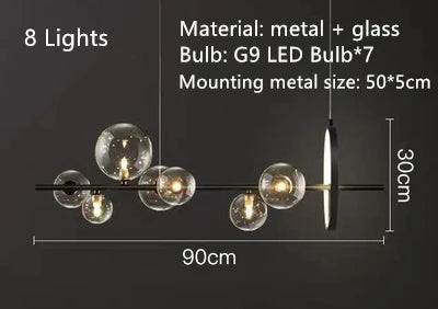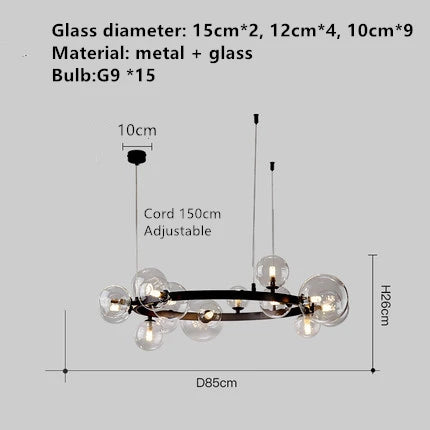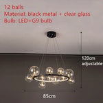 Lustre design rond avec boules en Verre clair à LED