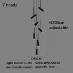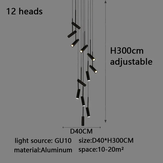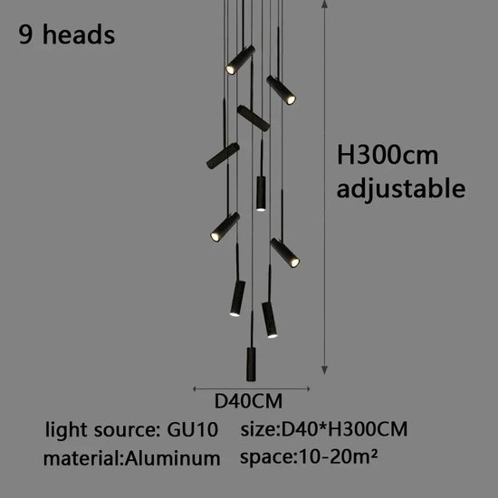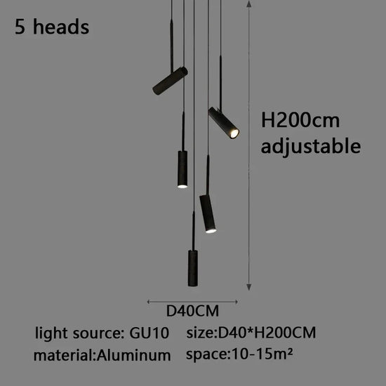 Led cylindrique spot suspension design moderne Restaurant éclairage noir blanc minimaliste escalier Long lustre