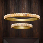 Lustre design anneaux LED postmoderne marbre or noir rond design pour salle à manger
