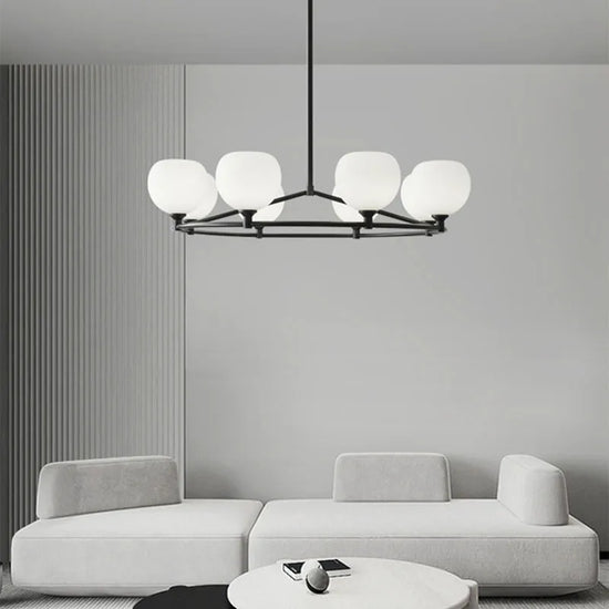 Ce lustre à anneaux avec ampoule en verre style nouveau est l'addition parfaite pour rehausser l'ambiance de votre espace. Bien que non dimmable, la lumière produite reste suffisamment confortable pour des soirées relaxantes, tout en étant lumineuse pour sublimer vos dîners et réceptions. Quel que soit l'environnement d’installation, qu’il s’agisse d’un cadre résidentiel ou commercial, ce lustre saura séduire par son allure moderne et élégante.