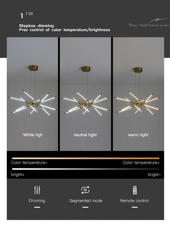 Ce lustre est non seulement un éclairage mais aussi une expression artistique. Le choix des matériaux de haute qualité, tels que le fer pour le corps et le métal pour l'abat-jour, lui confère une durabilité exceptionnelle tout en offrant une esthétique moderne et minimaliste. De plus, avec la possibilité de régler l'intensité lumineuse, vous pouvez créer l'ambiance parfaite pour chaque occasion, que ce soit un dîner romantique ou une soirée conviviale avec des amis.