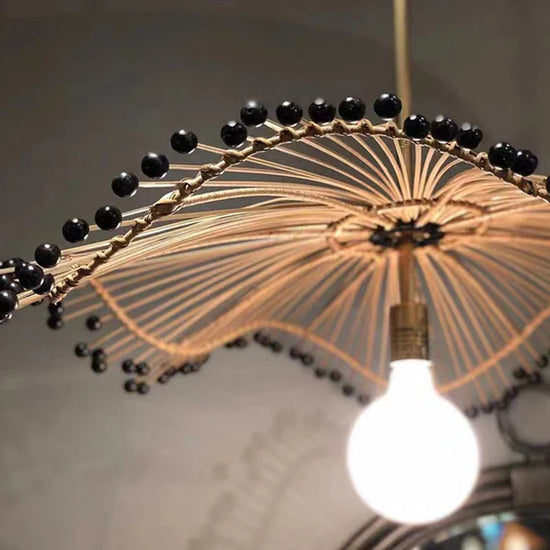 - Design Unique : Chaque pièce est tressée à la main, assurant une finition artisanale et une touche unique à chaque lustre.