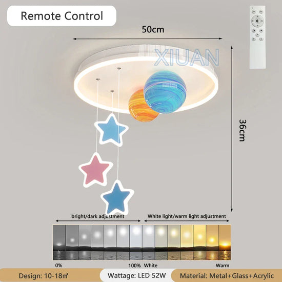 - Design Unique: Ce lustre arbore un design captivant, représentant votre propre mini système solaire avec des planètes et des étoiles colorées.