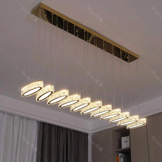 Découvrez le Lustre de décoration de maison moderne, un lustre de salle à manger qui combine à la perfection luminaires d'intérieur et éclairage de plafond. Conçu pour offrir à votre espace une touche d'élégance et de modernité, cet éclairage fantaisie LED en cristal saura créer une ambiance chaleureuse et sophistiquée dans votre intérieur.