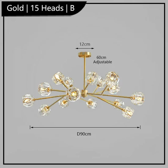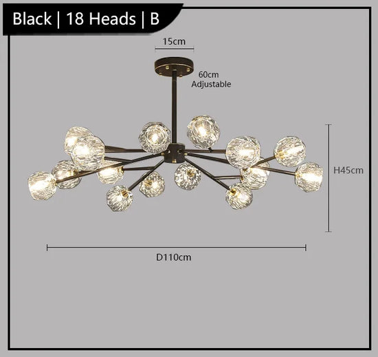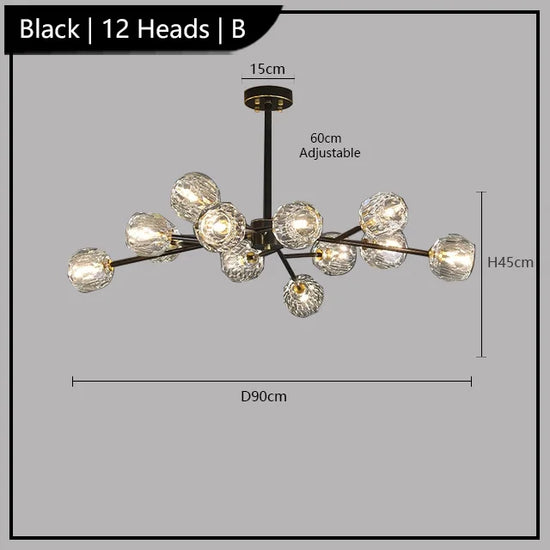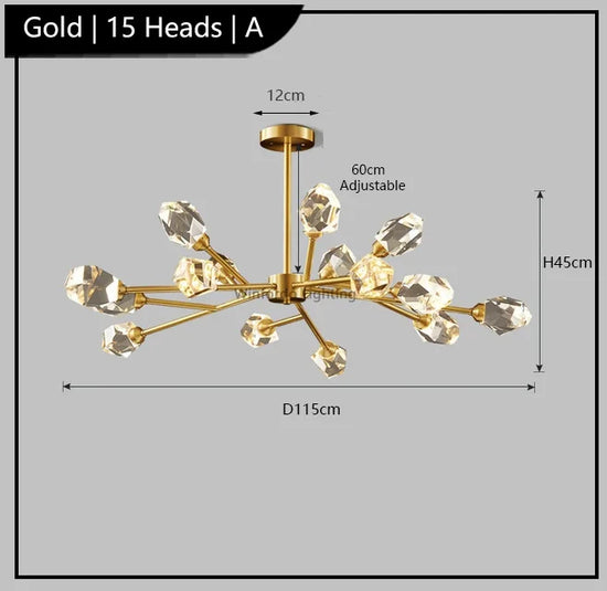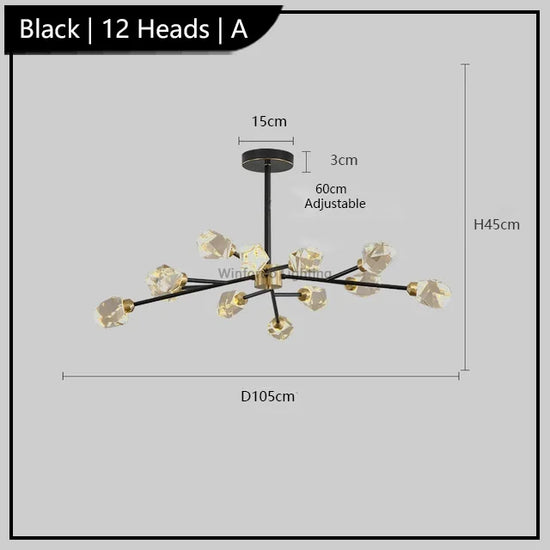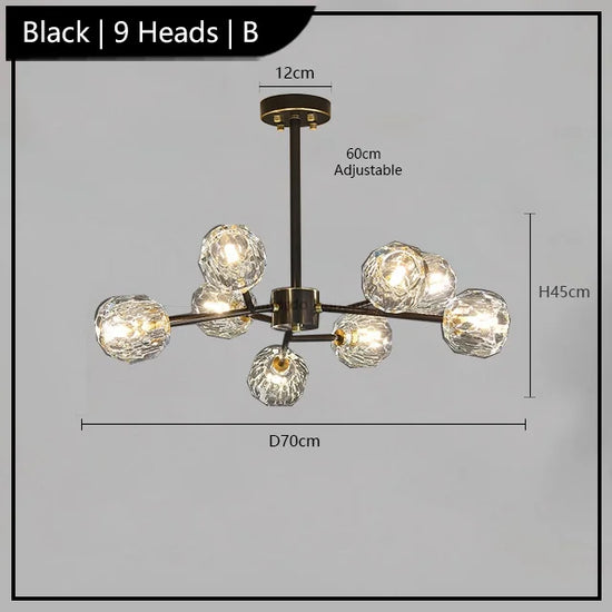 - **Design Postmoderne et Éclairage Luxueux** : Apportez une allure sophistiquée à votre espace avec ce lustre au style moderne, rehaussé de cristaux scintillants.