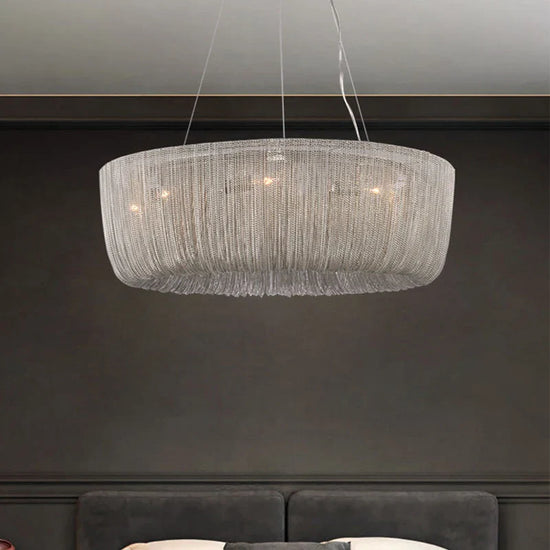 Apportez une touche de sophistication inégalée à votre intérieur avec notre lustre de luxe créatif post-moderne avec gland chaîne. Ce lustre majestueux allie une esthétique moderne à des matériaux de haute qualité pour devenir la pièce maîtresse de votre salon, chambre ou restaurant. Conçu par des créateurs renommés, ce lustre reflète un éclat luxueux grâce à son design de chaînes à gland, ajoutant une dimension de mouvement et d'élégance à n'importe quel espace. Avec sa structure en acier inoxydable brossé, ce luminaire ne se contente pas d'offrir de la lumière, il enrichit également votre environnement d'une ambiance contemporaine et chique.