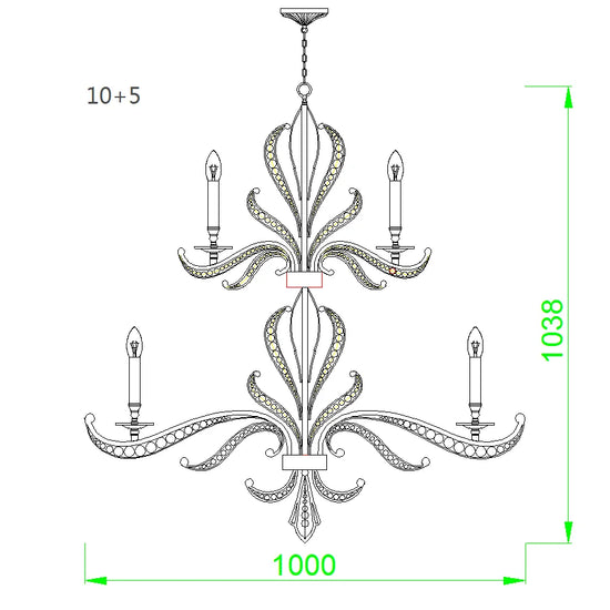 Ce lustre de luxe or transformera n'importe quel espace grâce à ses lignes contemporaines et sa présence majestueuse. Fabriqué en fer robuste, il assure une durabilité exceptionnelle. L'absence d'abat-jour met en valeur les ampoules incandescentes, offrant une double direction pour un éclairage captivant. Doté de motifs de paon raffinés, ce lustre est autant une source de lumière qu'une œuvre d'art.