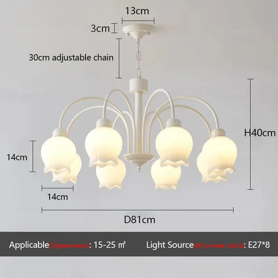 - Orchidées en verre dépoli : Donne une touche de sophistication et de douceur au design du lustre.